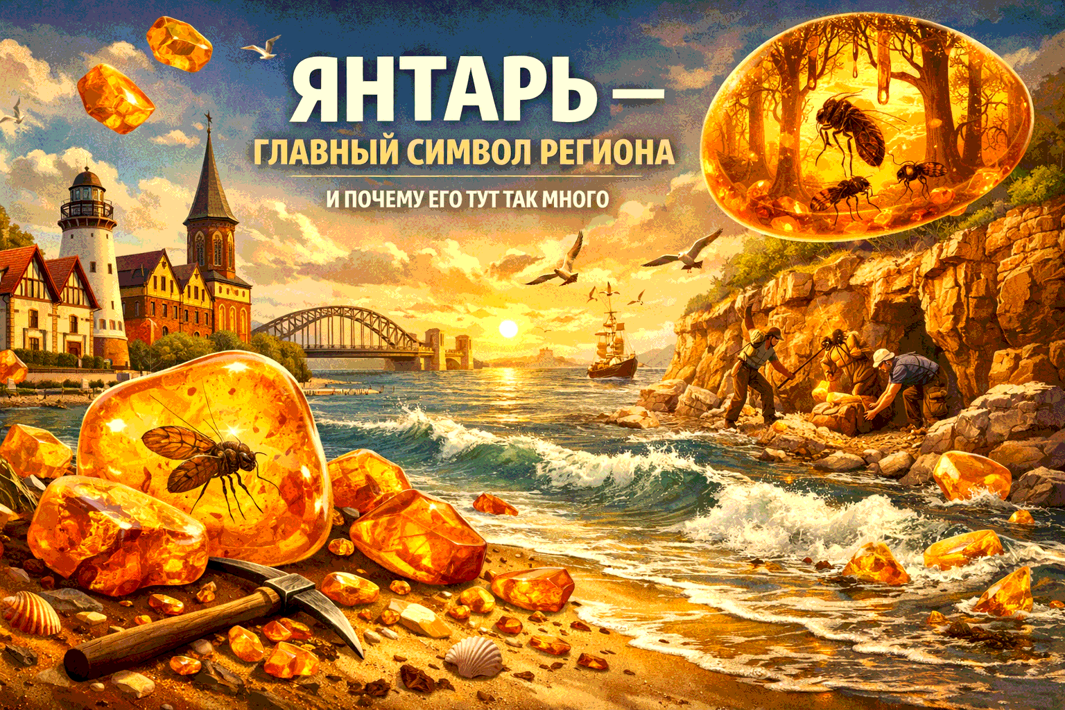 Если бы у Калининградской области был официальный “цвет”, это был бы тёплый медовый — цвет янтаря. Балтийский янтарь (его ещё называют сукцинит) — один из самых узнаваемых символов региона: от музеев и сувениров до целых маршрутов “по янтарным местам”.
